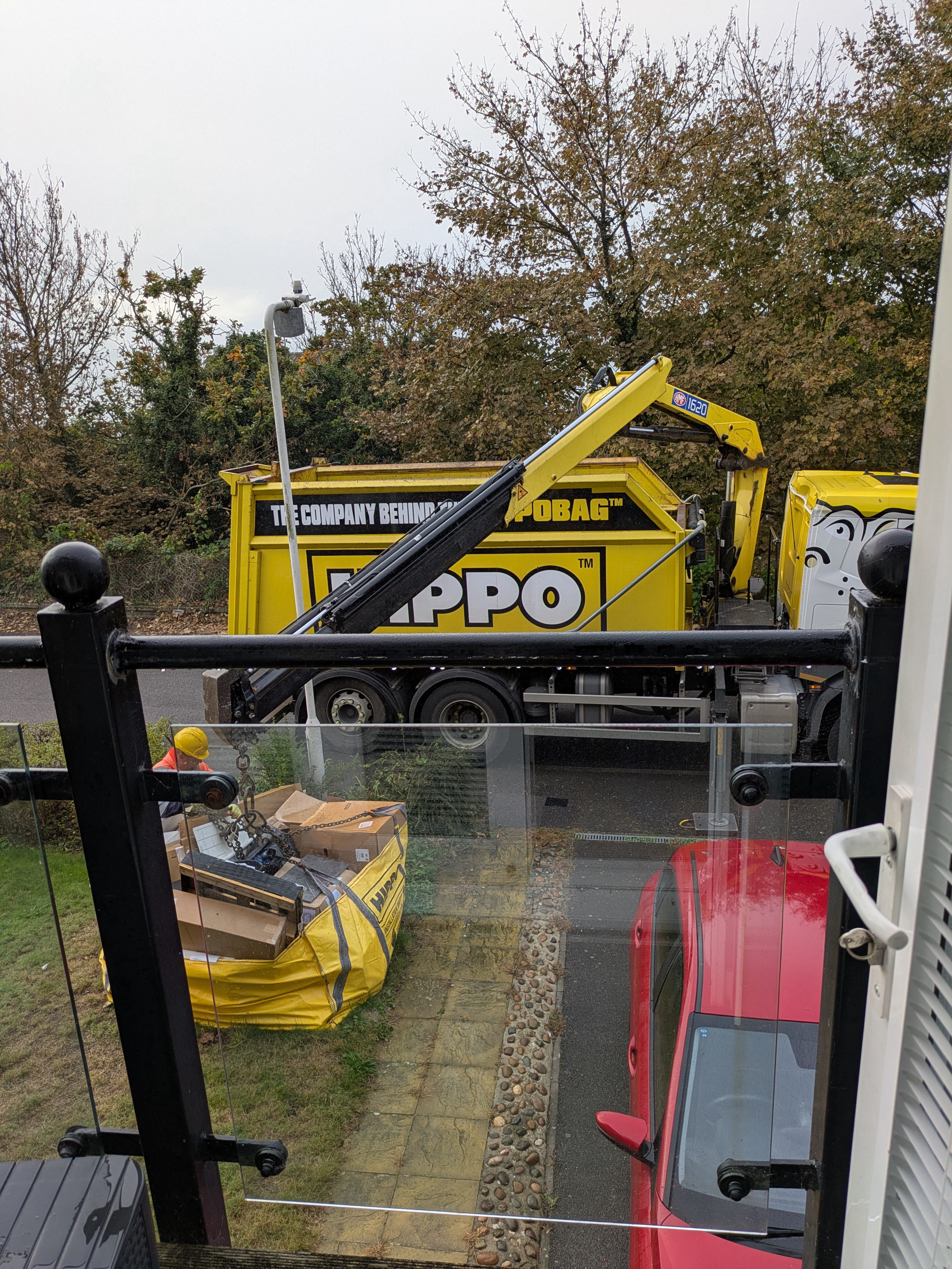A lorry with a crane just turned up to take all the old bathroom waste away. This job is nearly done! Still some painting for me to do. And still not sure about those handles.