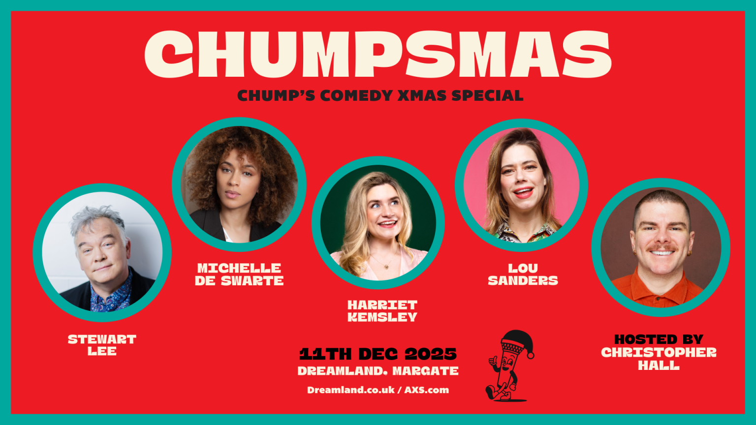 It’s the return of Chump’s Comedy’s Christmas special and this year’s Chumpsmas is the biggest yet! STEWART LEE replaces Ed Gamble, headlining a star-studded line up featuring MICHELLE DE SWARTE, HARRIET KEMSLEY, CHRISTOPHER HALL and LOU SANDERS!