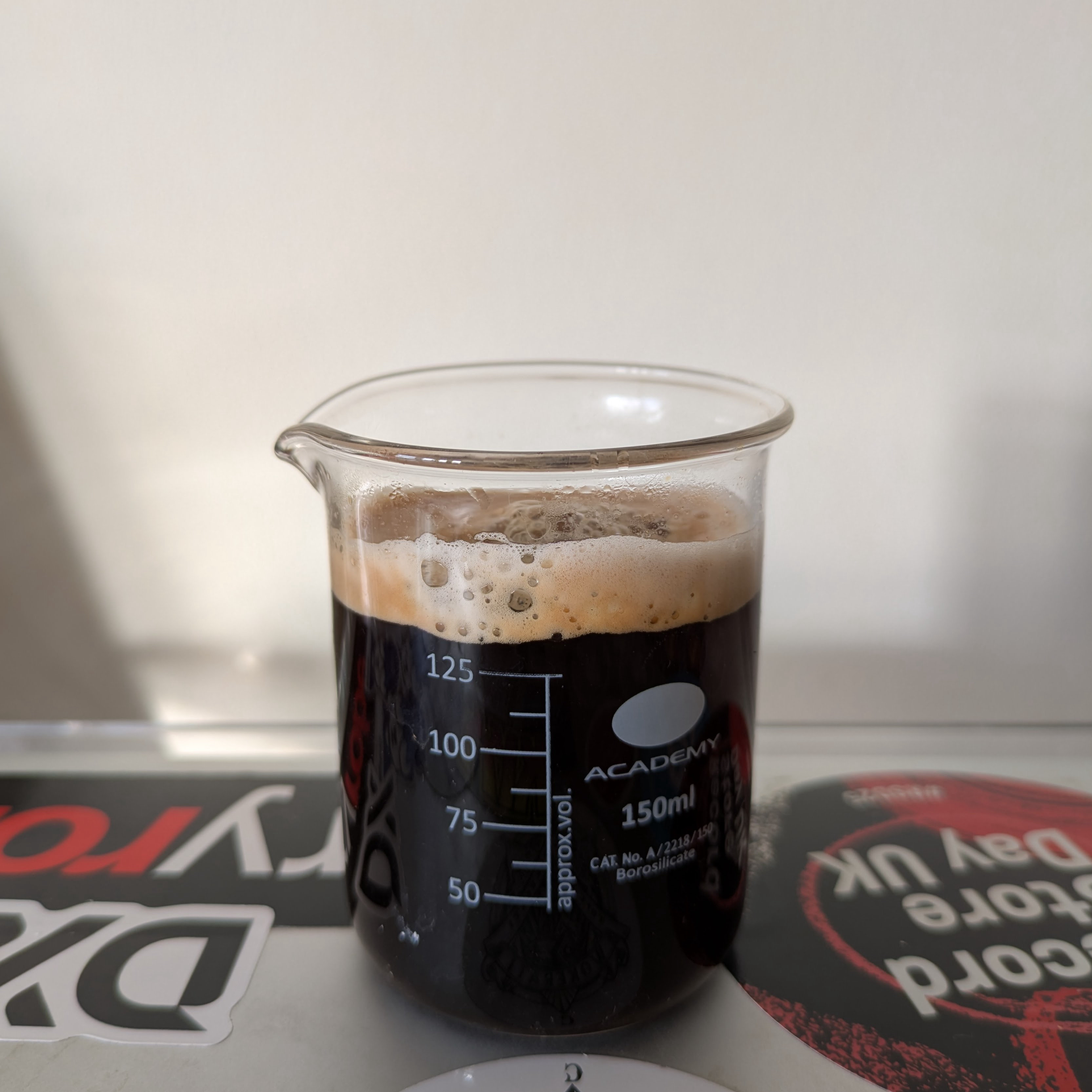 I have found that the 100ml meth lab beakers I originally bought, while too small as coffee cups, are just the right size for scooping washing powder. I found I like a 125ml coffee, so you might remember I had to get new ones.