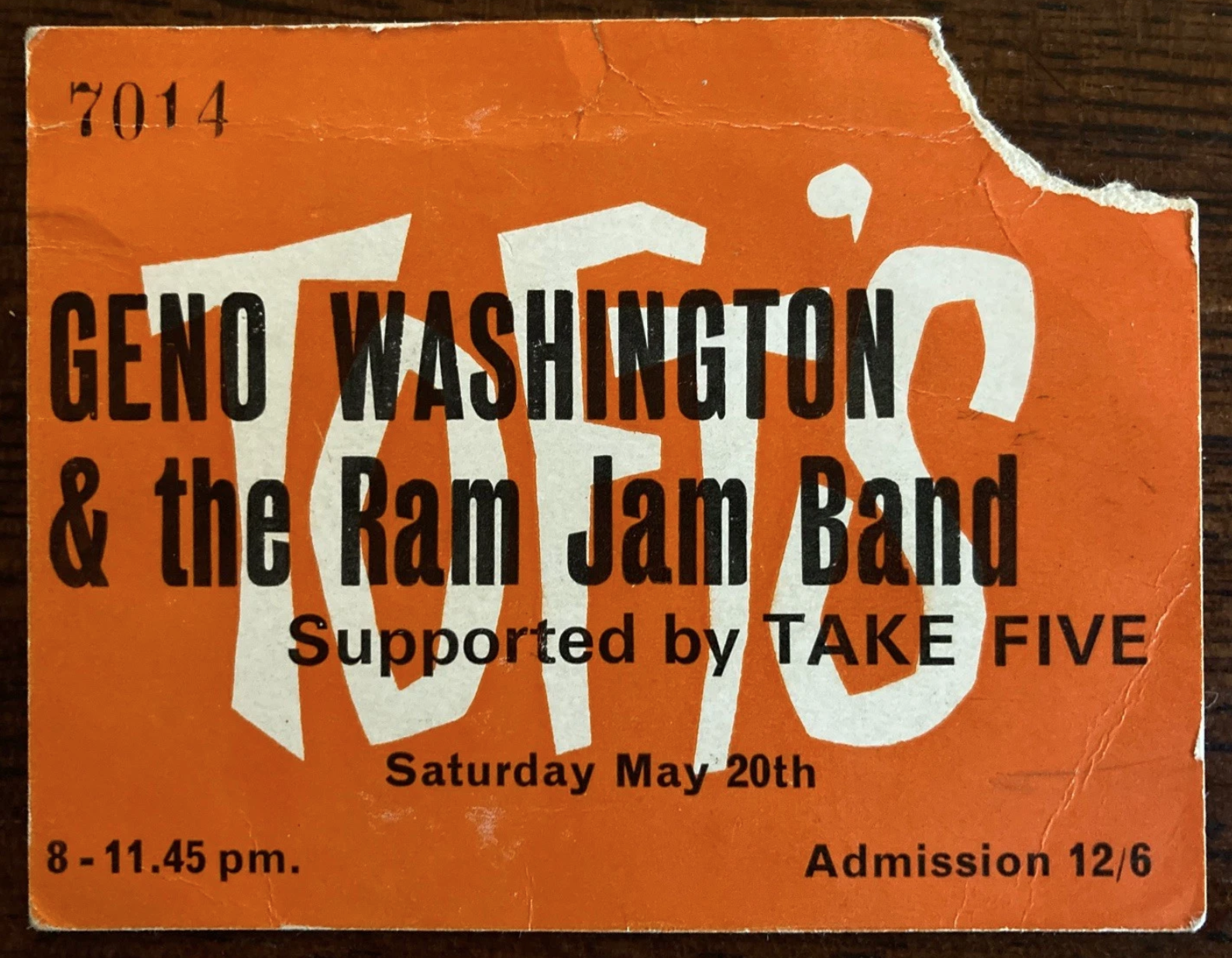 Found a ticket on ebay. Support from Take Five. Admission 12/6.