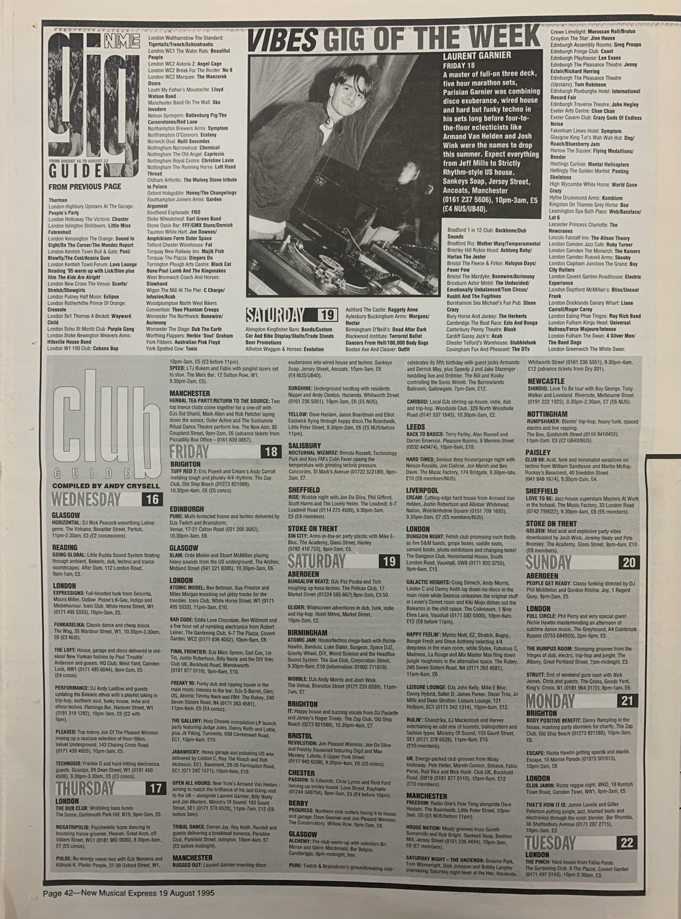 Gigs at Southampton Joiners I attended are David Devant and his Spirit Wife (1996), Heavy Stereo ('96), Tiger ('96), Cecil ('96), Mansun (1996), The Divine Comedy ('96), Tripping Daisy (1996), Babybird (1996), Christian Death ('96), Number One Cup ('96), Northern Uproar ('96), Catatonia (1996), Perfume ('96), Smaller ('95), Longpigs ('95), Fluffy ('95), Gouge ('95), Thurman ('95), Perfume (1995), Mansun (1995), Skunk Anansie (1995), We Know Where You Live ('95), Salad (1995), Sultans of Ping ('95), Sleeper ('95), Supergrass ('95), Shed Seven (1994), Wishplants (1994), and The Primitives ('91).