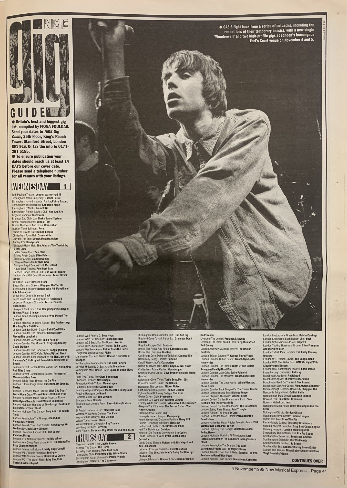 | Wed Nov 1 | Menswear 5 | Babybird 6, Daevid Allen 7, Longpigs 5, Manson 8 |