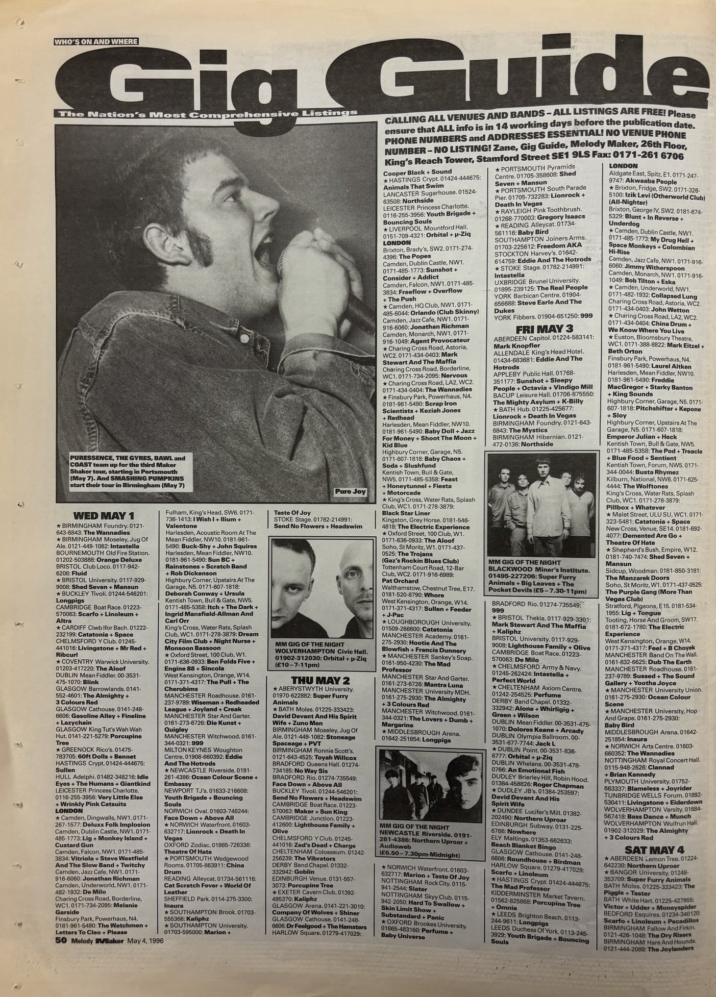 Other gigs at Portsmouth Pyramids I have been to are Terrorvision ('96), Dodgy (1996), Lighthouse Family (1996), Julian Cope ('96), Everything But The Girl (1996), The Bluetones ('96), Cast (1996), Underworld ('96), Frank Black (1996), Mike Flowers Pops ('96), Skunk Anansie ('96), Menswear (1995), Carter The Unstoppable Sex Machine (1995), Echobelly (1995), Sleeper ('95), The Pogues (1995), Faith No More ('95), Skin (1994), Chumbawamba ('94), Rollins Band (1994), Terrorvision ('94), The Wildhearts ('94), + Therapy? ('94).