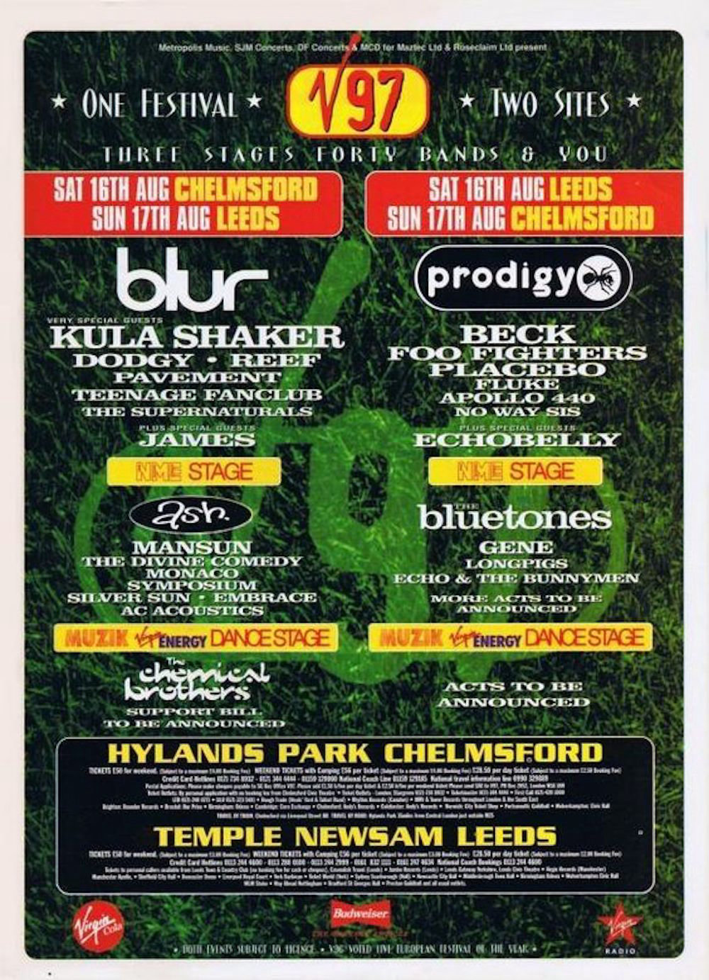 I was at this one, see more in my gigography for 1997. I have seen Prodigy at least 7 times; Glastonbury ('94), Glastonbury ('95), Beetle Bash @ Avon Park Raceway (1995), Glastonbury ('97), V Festival @ Hylands Park (1997), Brixton Academy ('97), and Reading Festival (2002), though I still have some bragging tagging to do so this may go up. Part of every gig I was at from '87 to 2026. A natural step from my Best Gigs Ever blog post. Yeah I know a bit nerdy, let's let that go though, I'm having fun reminiscing about this stuff.